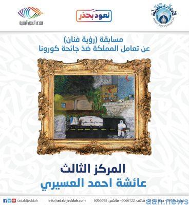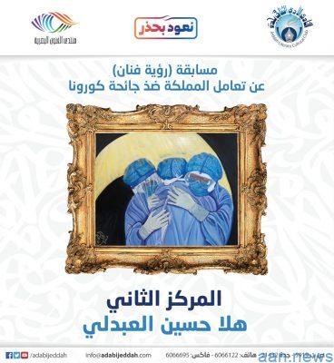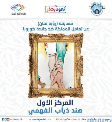 أعلن نادي جدة الأدبي الثقافي ، أسماء الفائزين بمسابقة (رؤية فنان) عن تعامل المملكة ضد جائحة كورونا. بحسب توصية لجنة التحكيم الخاصة بالمسابقة. حيث فاز بالمركز الأول الفنانه هند ذياب الفهمي. وجاء في المركز الثاني الفنانة هلا حسين العبدلي