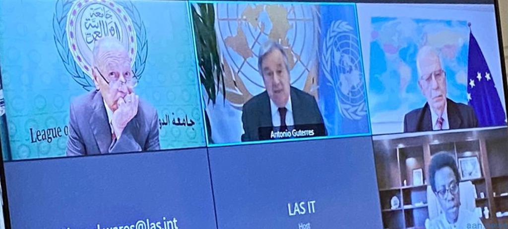 وصرح مصدر مسئول بالأمانة للجامعة بأن الإجتماع، الذي عقد عبر الفيديو كونفرانس ويعد السادس من نوعه للجنة الرباعية، عُقد على مستوى قيادات المنظمات الأربع وشهد مشاركة كل من أنطونيو جوتيريس سكرتير عام الأمم المتحدة، وجوزيب بوريل الممثل الأعلى للاتحاد الأوروبي للشئون الخارجية والسياسة الأمنية، ومونيك نسانزباجاجانوا نائبة رئيس مفوضية الاتحاد الافريقي التي مثلت رئيس المفوضية موسى فقيه محمد.