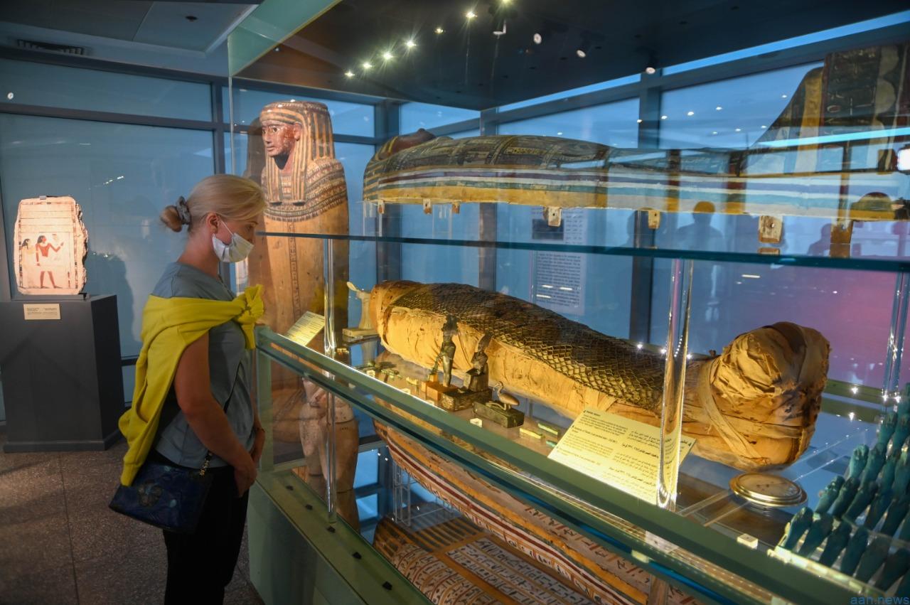بعد مرور ساعات قليلة على إفتتاح متحفي الآثار المصرية، اليوم الثلاثاء، بمطار القاهرة الدولي، زار متحف مبنى ركاب (٢) عددا من الزائرين المصريين والأجانب كان أولهم سائحة من روسيا.