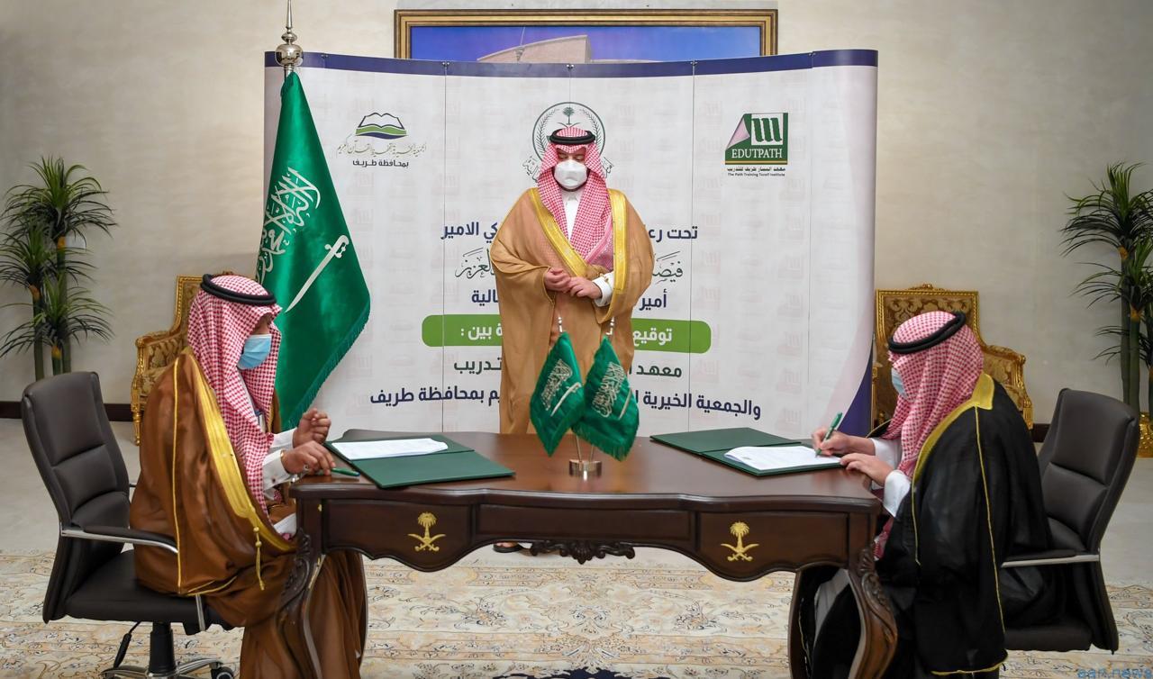 شهد صاحب السمو الملكي الأمير فيصل بن خالد بن سلطان بن عبد العزيز أمير منطقة الحدود الشمالية بمقر الإمارة اليوم, توقيع اتفاقية تعاون بين جمعية تحفيظ القرآن الكريم بمحافظة طريف ويمثلها رئيس مجلس الإدارة المكلف دوجان الرويلي ومعهد المسار للتدريب ويمثله رئيس مجلس الإدارة فايز بن سالم الرويلي.