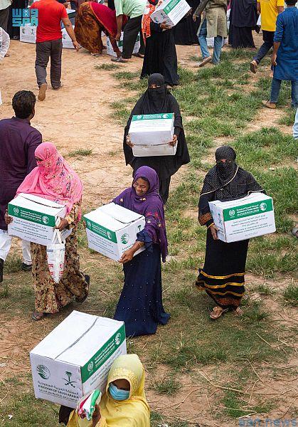 واصل مركز الملك سلمان للإغاثة والأعمال الإنسانية توزيع السلال الغذائية للاجئين الروهينجا والأسر الأكثر احتياجا في بنغلاديش.