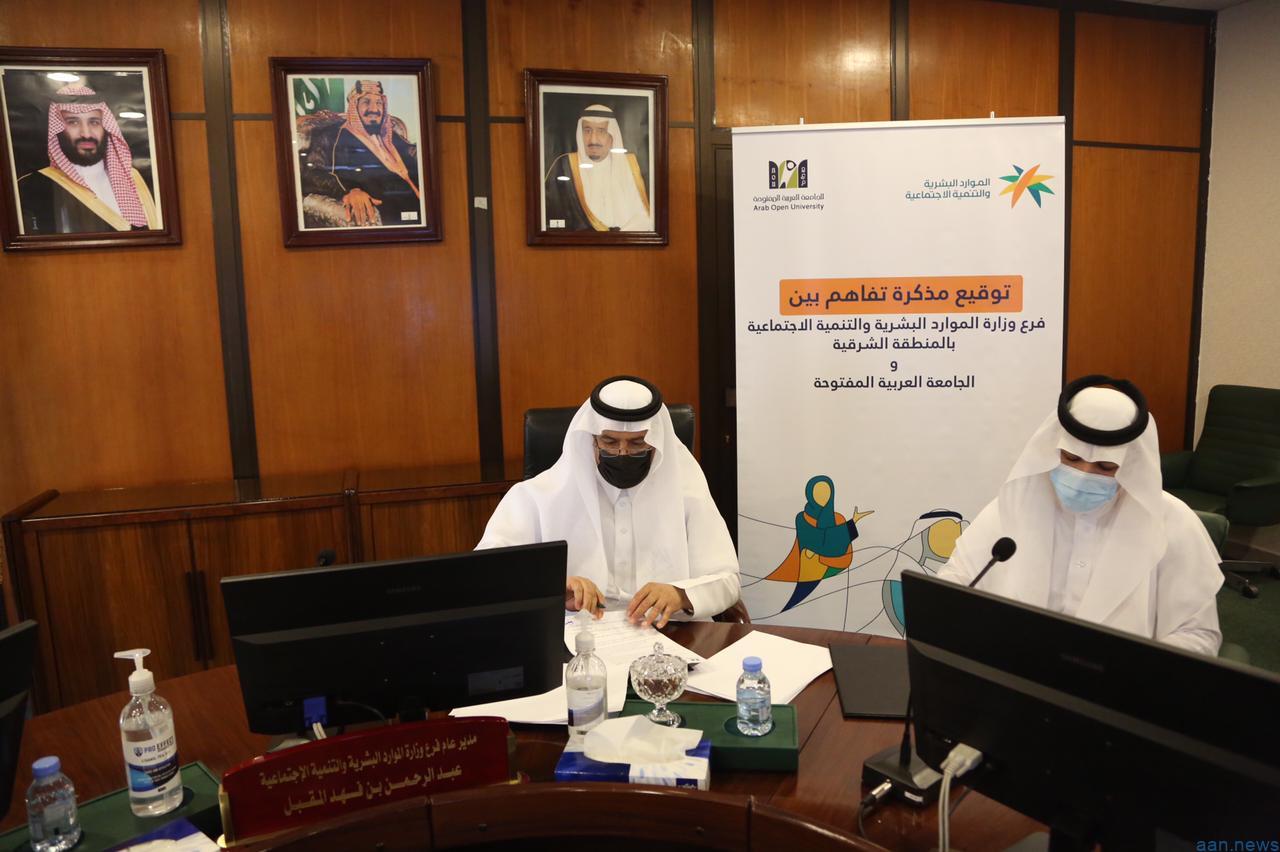 و افتتح اللقاء بتوقيع اتفاقيات فرع الوزارة بالمنطقة الشرقية مع كل من مؤسسة علي بن إبراهيم بن صالح المجدوعي الخيرية لخدمة المجتمع يمثلها رئيس اللجنة الإشرافية سعادة الأستاذ إبراهيم بن علي المجدوعي, والجامعة العربية المفتوحة يمثلها مدير فرع الجامعة بالدمام والاحساء سعادة الدكتور محمد بن عثمان السيف .