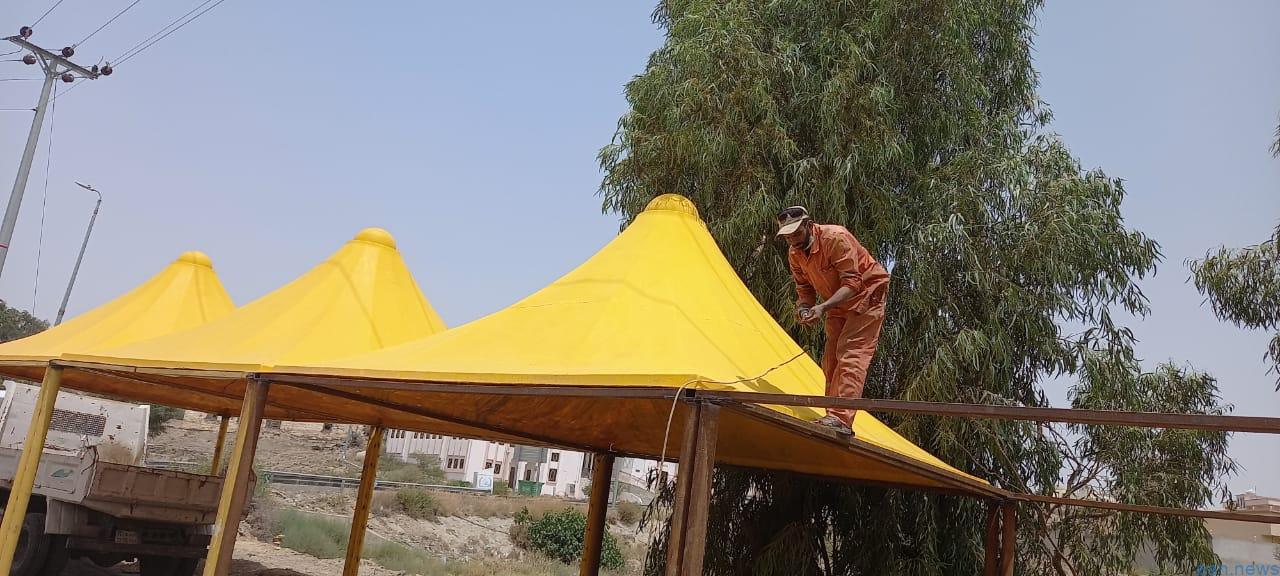 وبدأت البلدية بتهيئة المواقع وتركيب عدد من المظلات بعدد من المواقع الحيوية التي يرتادها الباعة الجائلين وزوار المنطقة وعلى الطرق الرئيسية والحيوية للمحافظة .