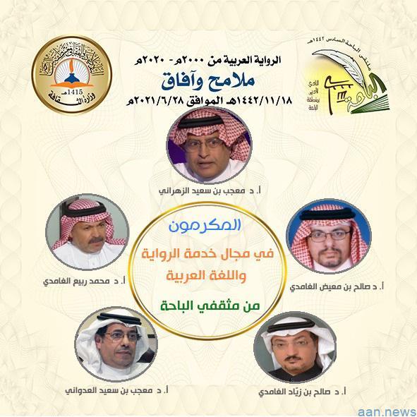 يُكرم نادي الباحة الأدبي الثقافي عددا من الرموز الثقافية من أبناء المنطقة والذين كتن ومازال لهم إسهامات ومنجزات ثقافية في خدمة الرواية واللغة العربية محليا وعربيا جرياً على عادة النادي في كل عام