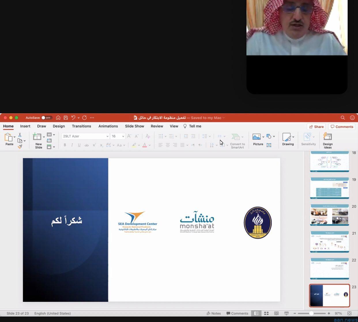 دشّنت جامعة حائل، بالتعاون مع الهيئة العامة للمنشآت الصغيرةِ والمتوسطة “منشآت”، ومجتمع ريادة الأعمال في المنطقة، مبادرة تفعيل منظومة الإبتكار في منطقة حائل.وذلك بحضور وكيل جامعة حائل للتطوير والأعمال، الدكتور عبدالعزيز العمرو، و نائب محافظ “منشآت” لقطاع ريادة الأعمال، الأستاذ عصام الذكير.