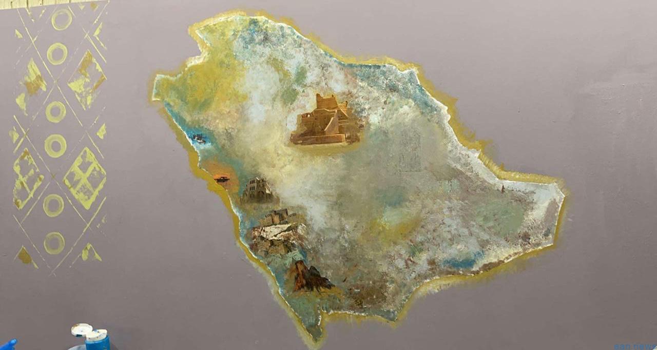 وكان العمل الفني الذي نسجته ريشة الفنانة التشكيلية سارة غنام عبارة عن جدارية مقاسها 220*140 سم تحوي التنوع التراثي داخل المملكة كعامل جذب للسياح ورمزًا للتنوع التاريخي والحضارات التي تكتنزها مملكتنا.