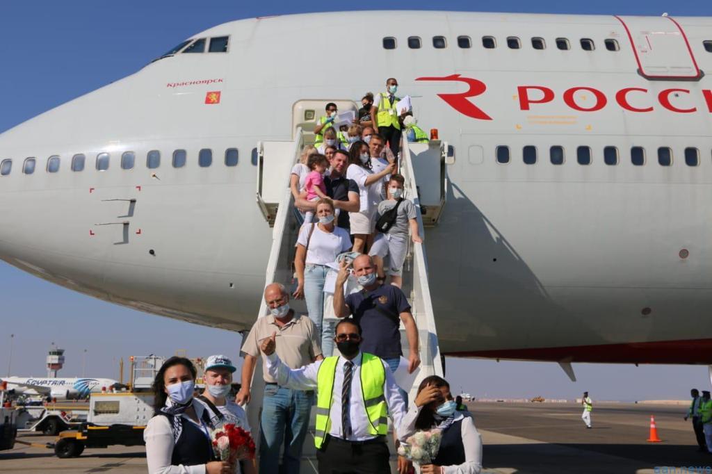 – وصول أولى الرحلات الروسية القادمة إلى مدينة شرم الشيخ  … واستقبال السائحين بالورود