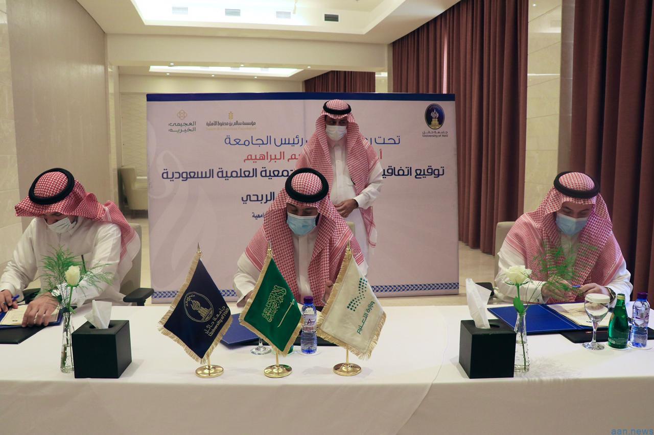 جامعة حائل توقع اتفاقية شراكة مع مؤسسة سالم بن محفوظ الأهلية، ومؤسسة عبدالعزيز ومحمد العجيمي وعائلتهما الخيرية.