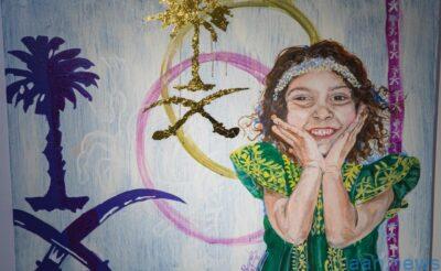 وأضافت بأنها خصصت لوحة خاصة بالمعرض بمسمى رؤية تظهر تفاصيل سعادة الشعب السعودي وثقته بقيادته من خلال تجسيد الفتاة السعودية وانطلاقتها بدعم الرؤية لكامل حقوقها بإرتدائها للون السلام الأخضر الذي يرمز للسعودية ويظهر بالخلفية اللون البنفسجي الذي يشير لهوية استقبال السعودية لضيوفها الرسميين من خلال السجاد البنفسجي للمراسم الرسمية المستوحى من زهور الخزامي التي أشار لها ولي العهد صاحب السمو الملكي الأمير محمد بن سلمان حفظه الله.