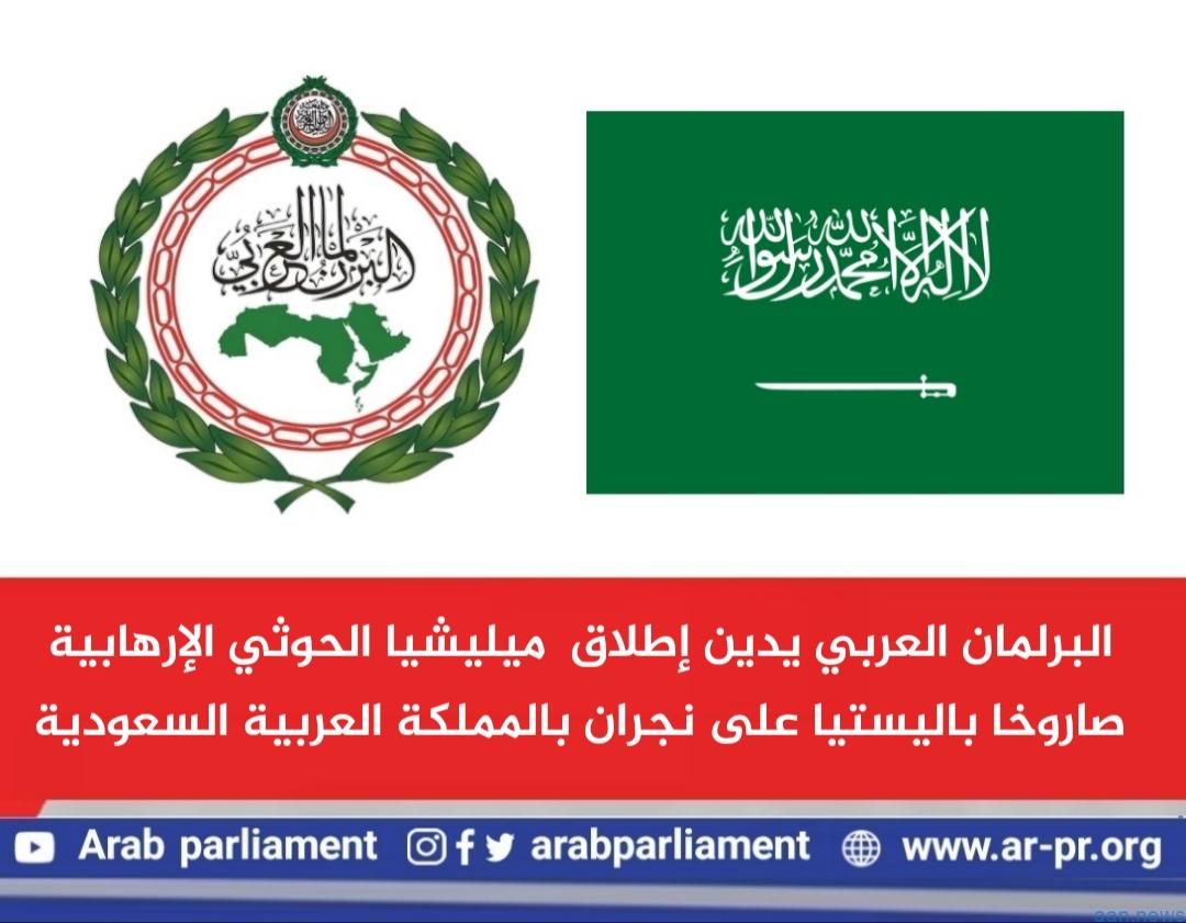 أدان البرلمان العربي إطلاق ميليشيا الحوثي الإرهابية صاروخًا باليستيًا تجاه مدينة نجران بالمملكة العربية السعودية، في استهداف ممنهج ومتعمد للمدنيين والمنشآت والأعيان المدنية، والتي اعترضته ودمرته بنجاح قوات تحالف دعم الشرعية باليمن بقيادة المملكة العربية السعودية.