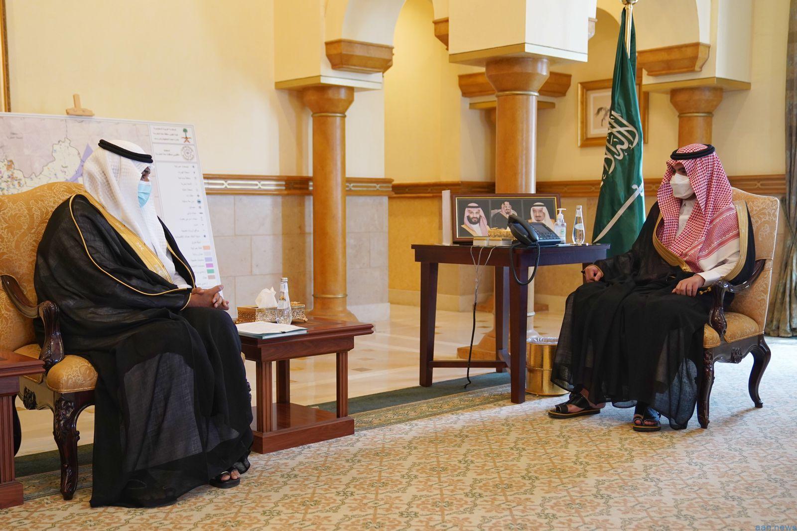 صاحب السمو الملكي الأمير بدر بن سلطان في مقر الإمارة بجدة مدير إدارة تعليم المنطقة مكة المكرمة الدكتور أحمد الزائدي والذي سلّم سموه التقرير السنوي لتعليم المنطقة وخطط استعدادات العودة الآمنة الحضورية للطلبة للعام الدراسي الجديد 1443 هـ.