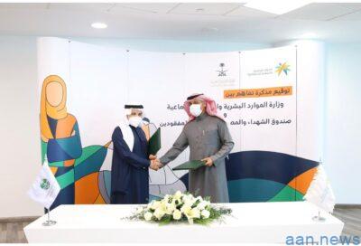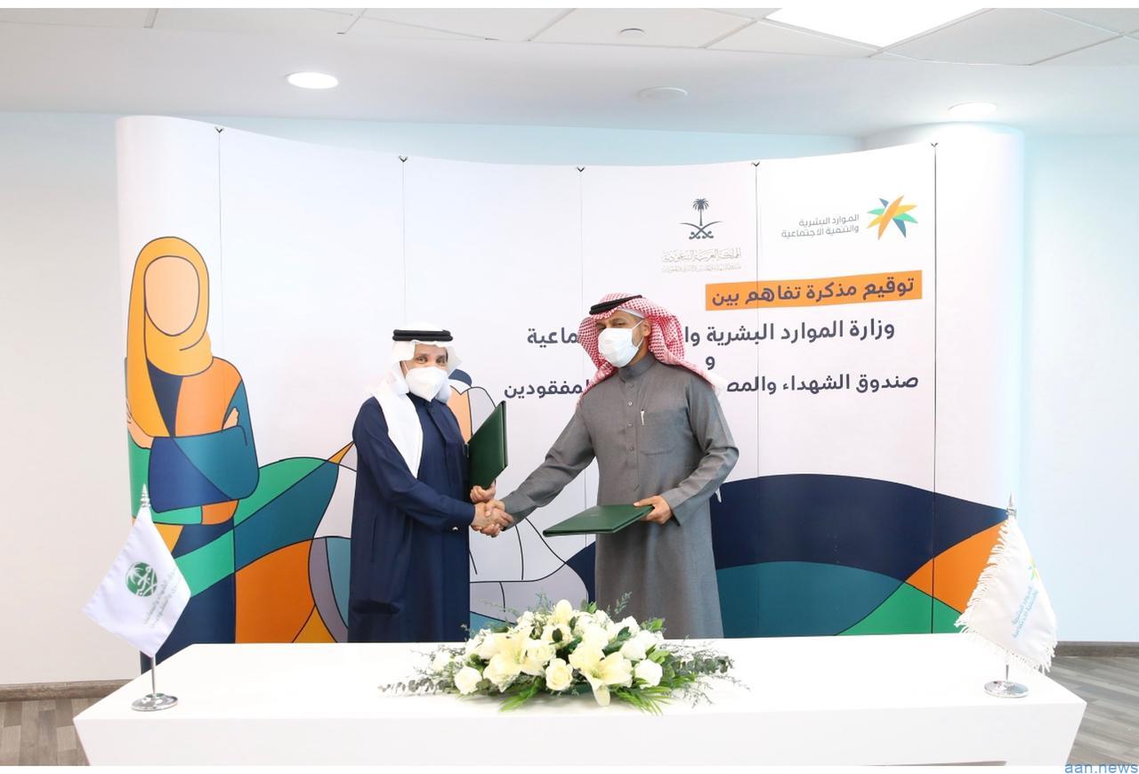 وقعت وزارة الموارد البشرية والتنمية الاجتماعية مذكرة تفاهم مع صندوق الشهداء والمصابين والأسرى والمفقودين، حيث مثّل الوزارة في توقيع المذكرة معالي نائب وزير الموارد البشرية والتنمية الاجتماعية (لقطاع التنمية) الأستاذ ماجد بن عبد الرحيم الغانمي، ومن جانب الصندوق مستشار وزير الداخلية معالي الأمين العام الدكتور ساعد بن خضر العرابي الحارثي.
