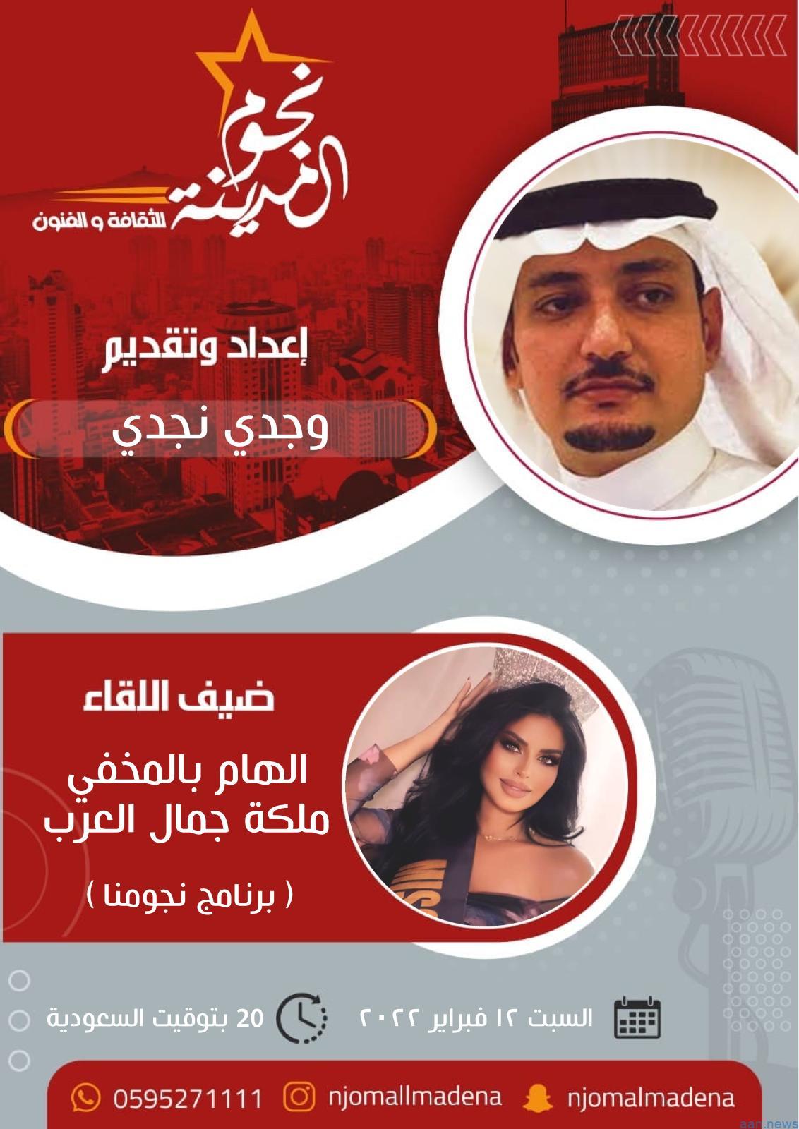 ملكة جمال العرب الهام بالمخفي من المملكة المغربية يوم السبت ١٢ فبراير ٢٠٢٢م الساعة الثامنة مساءا بتوقيت السعودية.