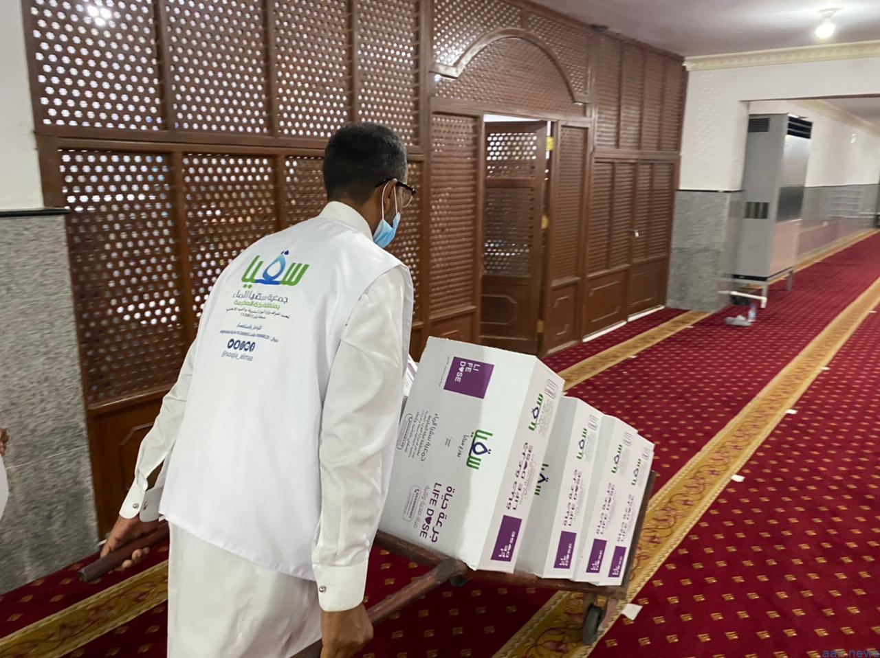 كشف تقرير جمعية سقيا الماء الخيرية بمنطقة مكة المكرمة لشهر يناير الماضي عن اطلاق مشروع سقيا المعتمرين والمساجد والمرضى والمحتاجين داخل حد الحرم، وتوزيع ( 141,800 ) عبوة مياه ضمن برامج سقيا نزلاء الأربطة ودور الأيتام وسقيا مستفيدي الجمعيات الخيرية وسقيا العمال والمساجد والمقابر ومغاسل الموتى ، فيما أكد التقرير مواصلة الجمعية تأمين مراكز لقاح كوفيد 19 بمياه الشرب كأحد أهم واجباتها للتعاون والتكاتف مع تلك المراكز التي تواكب جهود حكومتنا الرشيدة للسيطرة على جائحة كورونا ، كما كشف التقرير أن إيرادات وقف سقيا الماء في مكة المكرمة بلغت حتى اليوم (4,097,235) ريال في حين أن المبلغ المستهدف للوقف يصل إلى عشرة ملايين ريال والذي تم تحديد مصارفه على سقيا الحجاج والمعتمرين ، وزوار المسجد الحرام ، ومحتاجي السقيا في منطقة مكة المكرمة .