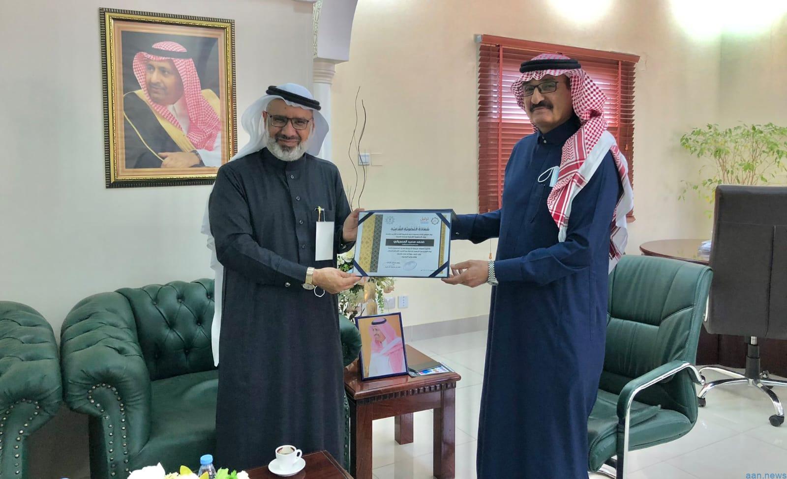 وفي ختام الزيارة سلّم رئيس مجلس إدارة الجمعية العضوية الشرفية الأولى للأستاذ محمد المعجباني رئيس مجلس إدارة لغرفة الباحة وذلك تقديراً لجهوده ودعمه لجمعية ترتيل ، ونقل المعجباني تحياته وتحيات أعضاء مجلس الغرفة لسمو الرئيس الفخري للجمعية على اهتمامه بتعليم كتاب الله حفظا وتلاوة وسلوك والتي تعكس حرص القيادة أيدها الله بالنصر والتمكين بدستور هذه البلاد المباركة القرآن الكريم .