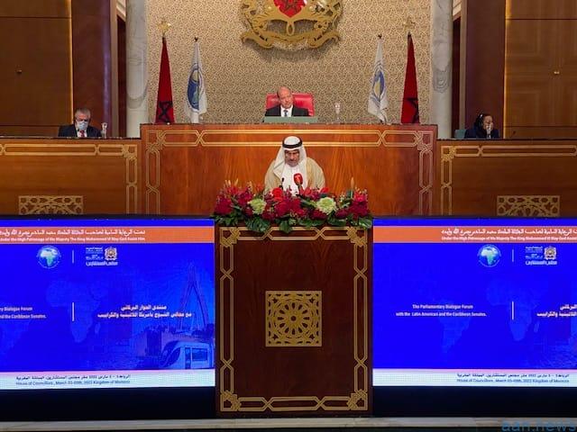 جاء ذلك خلال كلمته اليوم في افتتاح أعمال منتدى الحوار البرلماني مع مجالس الشيوخ في منطقة أمريكا اللاتينية والكاريبي الذي تنظمه رابطة مجالس الشيوخ والشورى والمجالس المماثلة في أفريقيا والعالم العربي والمقام في المملكة المغربية .