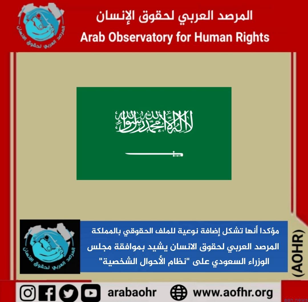 أشاد المرصد العربي لحقوق الإنسان بموافقة مجلس الوزراء السعودي على “نظام الأحوال الشخصية”، مؤكدا أن هذا النظام يمثل نقلة نوعية، تتماشى مع جهود المملكة العربية السعودية في حماية حقوق الإنسان وتمكين المرأة واستقرار الأسرة التي هي أساس المجتمع.