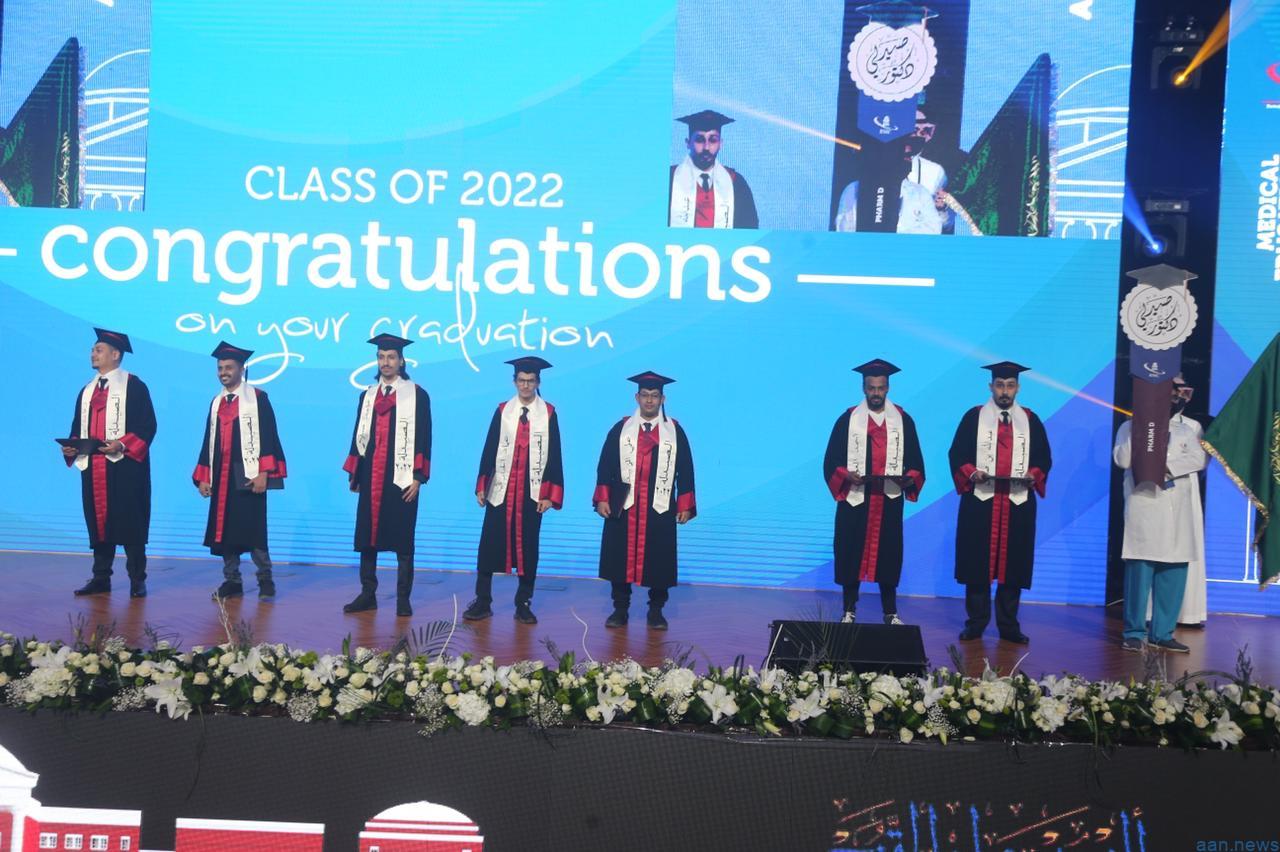 حيث بدأ الحفل بالسلام الملكي وآياتٍ من الذكر الحكيم ثم الكلمة الافتتاحية فمسيرة الأكاديميين تبعتها مسيرة الخريجين يتقدمهم طلاب وطالبات مرتبة الشرف كما أدى الخريجون قسم المهنة والذي ألقاها عليهم الدكتور محمد طاهر طيب عميد الكلية ، والذي تضمن أسمى المعاني الإنسانية والأخلاقية و الدينية .