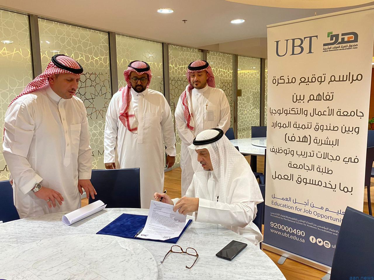 أبرم صندوق تنمية الموارد البشرية (هدف) وجامعة الأعمال والتكنولوجيا الأهلية، اليوم ، اتفاقية تعاون لدعم توظيف خريجي الجامعة والطلاب المتوقع تخرجهم، بهدف زيادة قدرتهم التنافسية في سوق العمل ورفع نسبة التوظيف، وذلك ضمن مبادرة “هدف” في برنامج دعم مكاتب توظيف الخريجين بالجامعات.