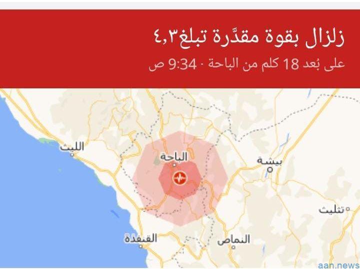 هزة أرضية بقوة 4.3 درجة شعر بها سكان #الباحة والمناطق الجاورة لها