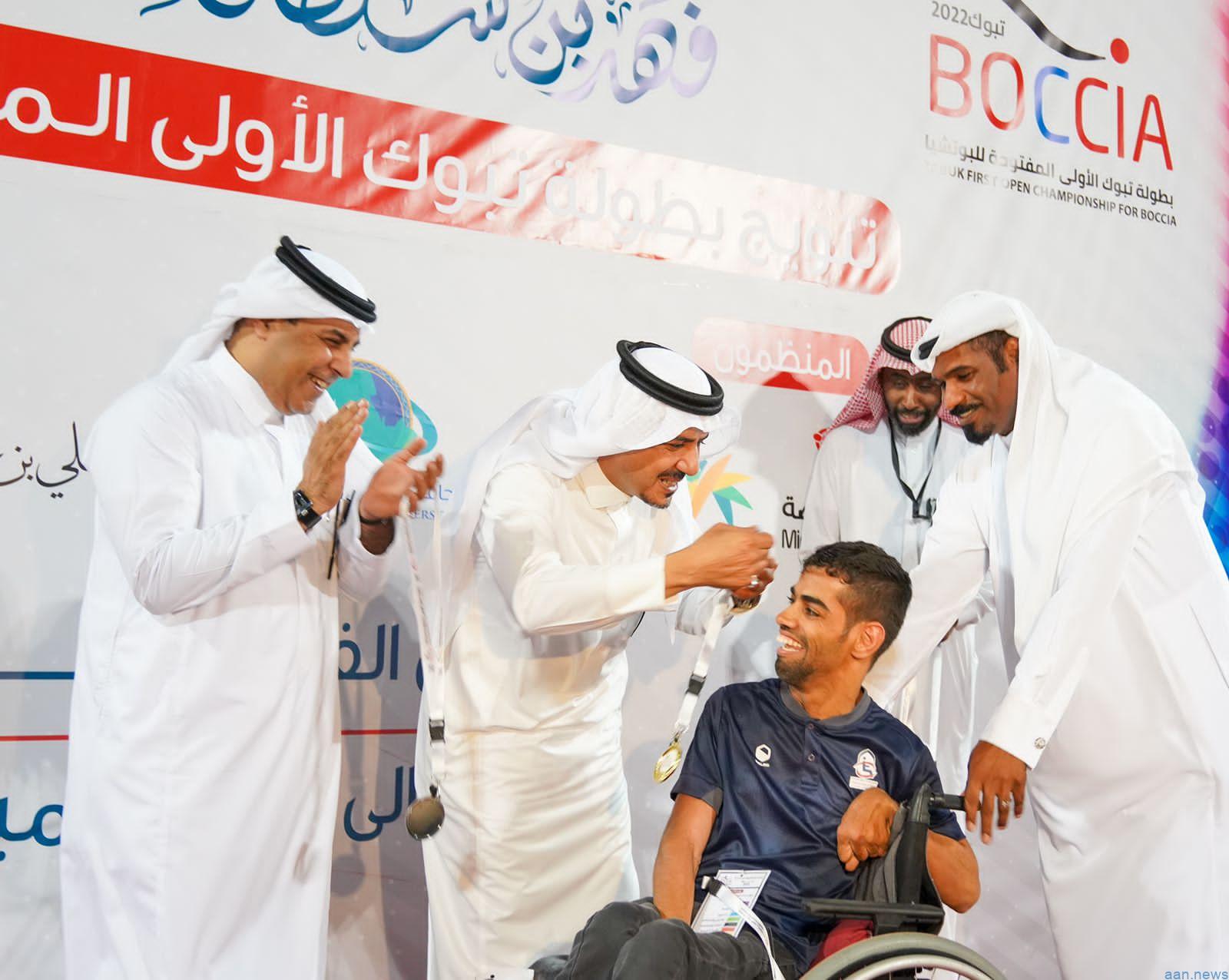 اختتمت مساء اليوم بطولة تبوك الأولى المفتوحة للعبة البوتشيا, التي أقيمت تحت رعاية صاحب السمو الملكي الأمير فهد بن سلطان بن عبدالعزيز أمير منطقة تبوك, واستضافتها جامعة فهد بن سلطان، واستمرت لمدة خمسةَ أيام، بمشاركة 85 لاعباً من أندية ذوي الإعاقة بتبوك، والمدينة المنورة، والأحساء، والدمام، والطائف، تحت شعار “أنتم منَّا ونحن معكم”.