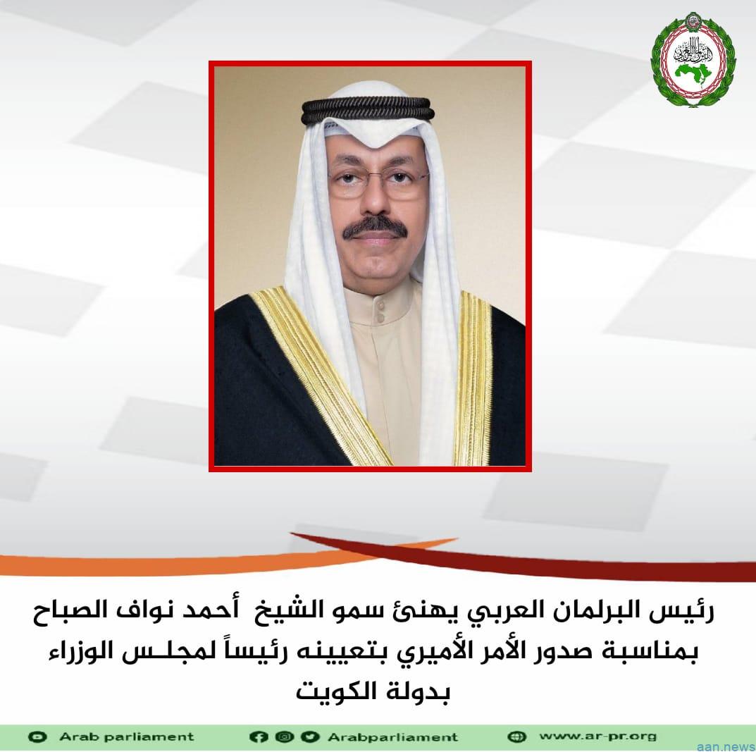 أعرب عادل بن عبد الرحمن العسومي رئيس البرلمان العربي باسمه ونيابة عن جميع أعضاء البرلمان العربي، عن خالص التهاني وعظيم التبريكات لسمو الشيخ أحمد نواف الصباح بمناسبة صدور الأمر الأميري الكريم بتعيينه رئيساً لمجلس الوزراء بدولة الكويت.