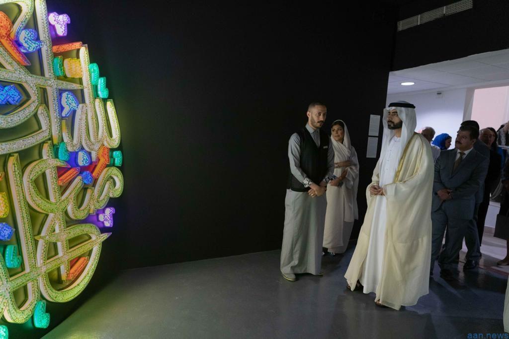 وتوقف رئيس مكتب سمو الحاكم في بداية جولته في المعارض المعاصرة، التي تجمع عدداً من الفنانين من دولة الإمارات العربية المتحدة وغيرها من مختلف دول العالم، وتقدم لوحاتهم المتنوعة من الأعمال التركيبية، والفيديو، واستخدام الخامات المختلفة مثل القماش والخشب والكرتون والخشب المطلي وغيرها.