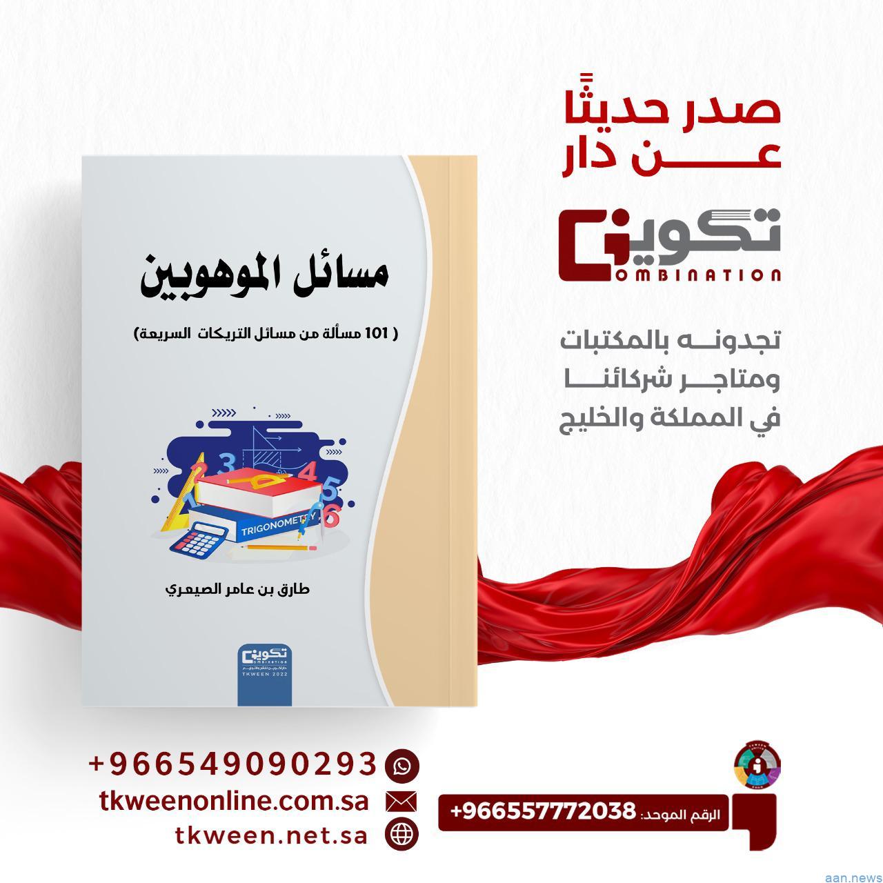 أصدر المشرف التربوي بمكتب التعليم بالصفا الأستاذ طارق الصيعري كتابه الثاني، بعنوان “مسائل الموهوبين – 101 مسألة من مسائل التريكات السريعة”، حيث يعرض حاليا في دار تكوين بمعرض الرياض الدولي للكتاب حيث يحتوي على مادة علمية تخص المعلمين والطلاب الموهوبين تشمل فروع الرياضيات التعليمية لمستويات الطلاب من الصفوف العليا حتى المرحلة الثانوية، ضمن مسائل الجبر والهندسة، ونظرية الأعداد، ونظرية التركيبات. ويعتبر الكتاب هو الكتاب الثاني في سلسلة الرياضيات العالية بعد كتابه الأول “الخطوة الأولى إلى أولمبياد الرياضيات”.