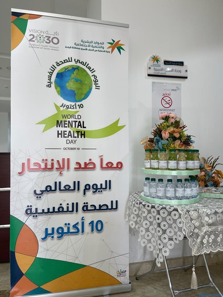احتفلت إدارة الحماية من العنف الأسري بمنطقة الباحة والتابعة لفرع وزارة الموارد البشرية والتنمية الاجتماعية وبحضور سعادة وكيل التأهيل والتوجيه الاجتماعي الدكتور : عبد الله بن أحمد الوهيبي وسعادة مدير عام فرع الوزارة بمنطقة الباحة الاستاذ : شائق بن محمد ال شائق باليوم العالمي للصحة النفسية .