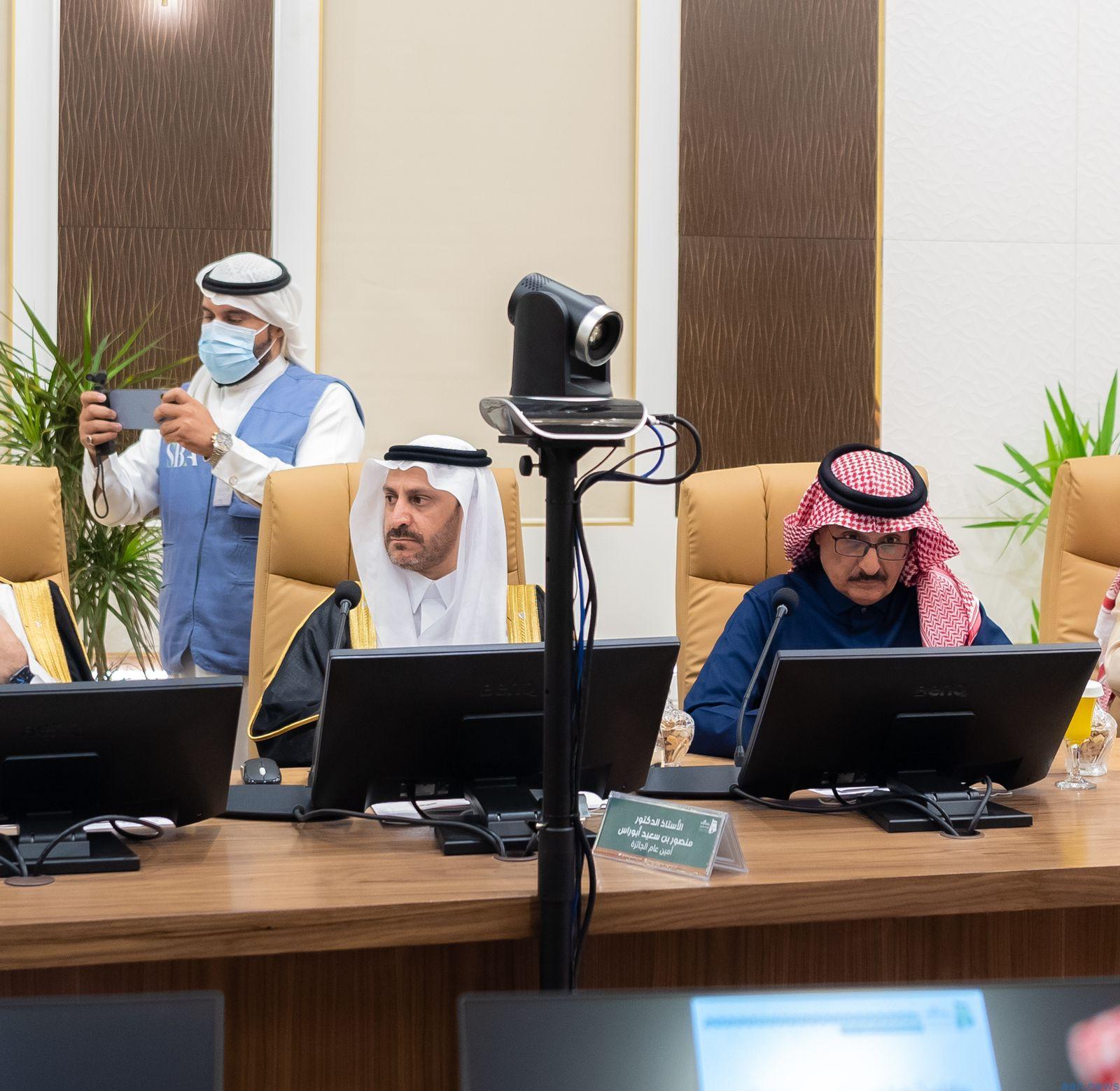 رأس صاحب السمو الملكي الأمير الدكتور حسام بن سعود بن عبدالعزيز أمير منطقة الباحة، رئيس جائزة الباحة للإبداع والتميز، بقاعة الاجتماعات بديوان الإمارة اليوم، اجتماع مجلس إدارة الجائزة في دورتها الثامنة .