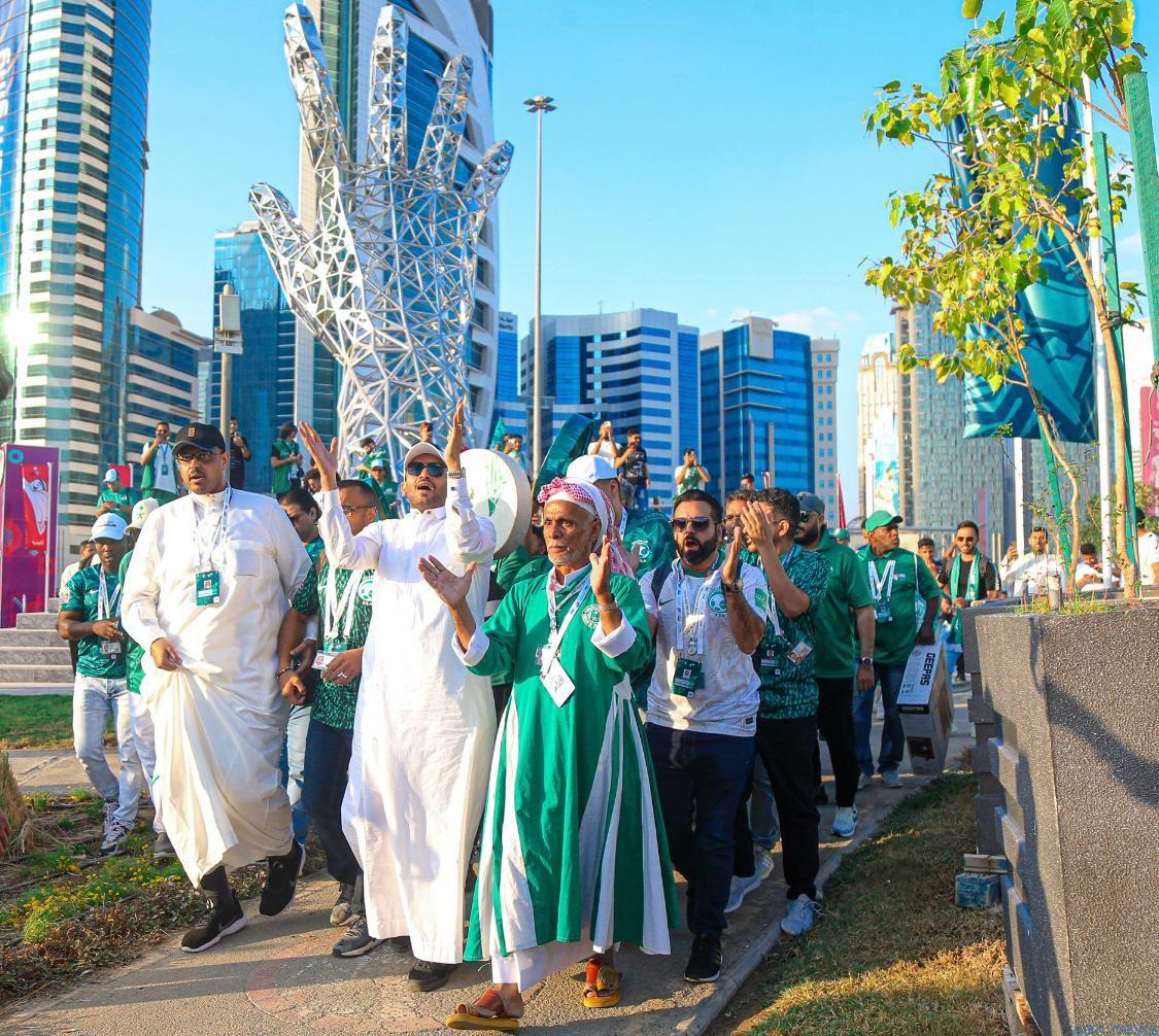ينظم مجلس جمهور المنتخب السعودي، اليوم (الثلاثاء)، أول مسيرة للجمهور في بطولة كأس العالم 2022، المقامة في دولة قطر خلال الفترة من 20 نوفمبر حتى 18 ديسمبر المقبل، والتي تحمل اسم «فوق هام السحب»، دعماً وتشجيعاً للصقور الخضر في مواجهتهم لمنتخب الأرجنتين.
