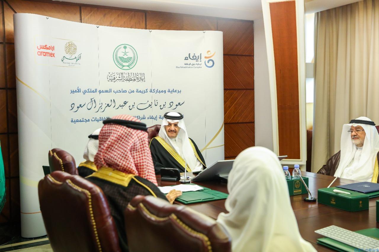 وبارك سموه توقيع اتفاقية تعاون بين الجمعية ومجموعة الكوهجي واتفاقية مماثلة بين الجمعية وشركة ارامكس لدعم أعمال الجمعية والمساهمة في خدمة ذوي الإعاقة.