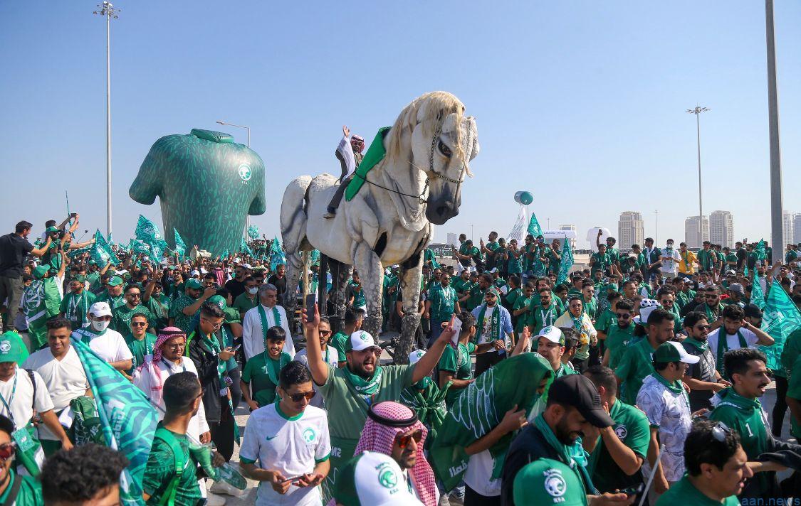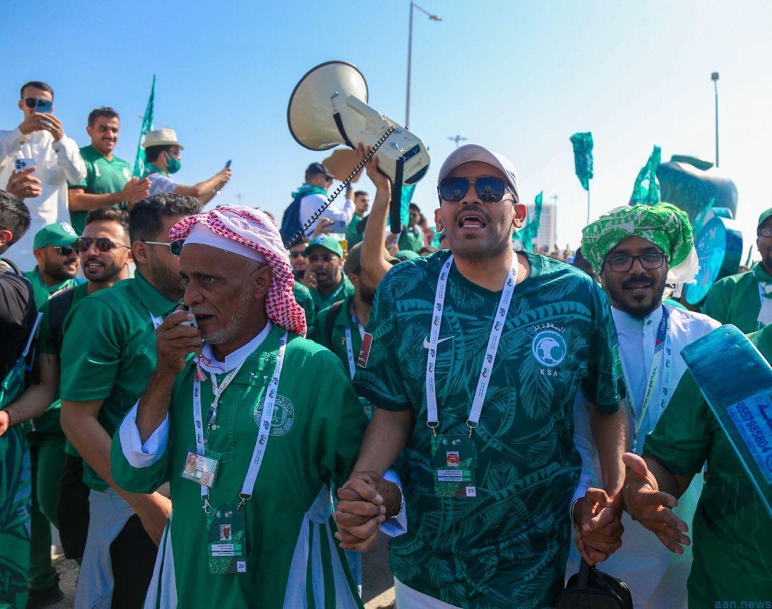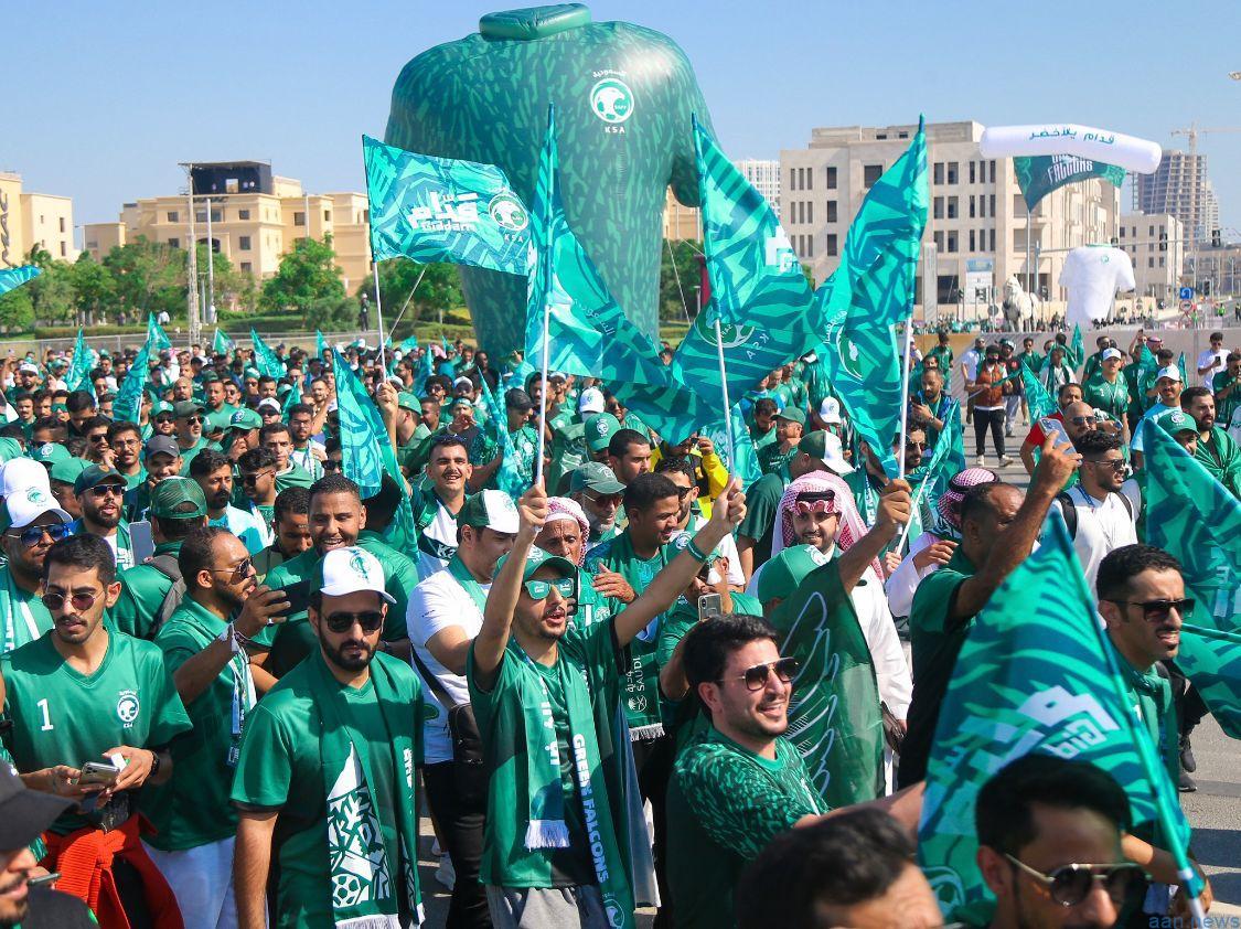 وشارك في المسيرة آلاف المشجعين، التي استبقت مواجهة المنتخب السعودي ومنتخب الأرجنتين، في الجولة الأولى من دور المجموعات بالمونديال، حيث انطلقت من مواقف G في ملعب لوسيل، حتى استاد المباراة، فيما يُعرف بـ«الميل الأخير»، في مسيرة شكّلت إضافةً مميزةً للمونديال بما تحمله من زخمٍ وأزياء مونديالية، وألوان وأهازيج عبرت عن محبة المشجعين لمنتخبهم الوطني.