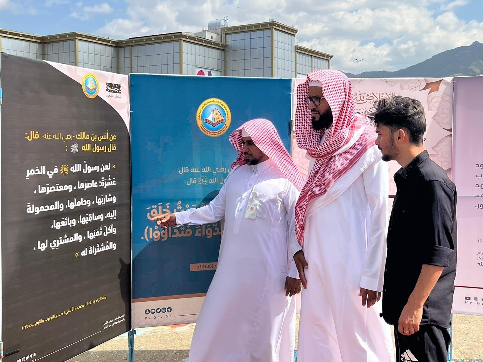 و تم عرض محتوى حملات الرئاسة التوعوية عبر لوحات وشاشات المعرض وذلك بعرض حملة ( عليكم بسنتي ) وحملة ( الخوارج شرار الخلق ) وحملة ( حقُّ الله ) وبرنامج (تعظيم قدر الصلاة) ومحتوى برنامج (خطر المسكرات والمخدرات) وغيرها لتوعية المجتمع بكافة أطيافه.