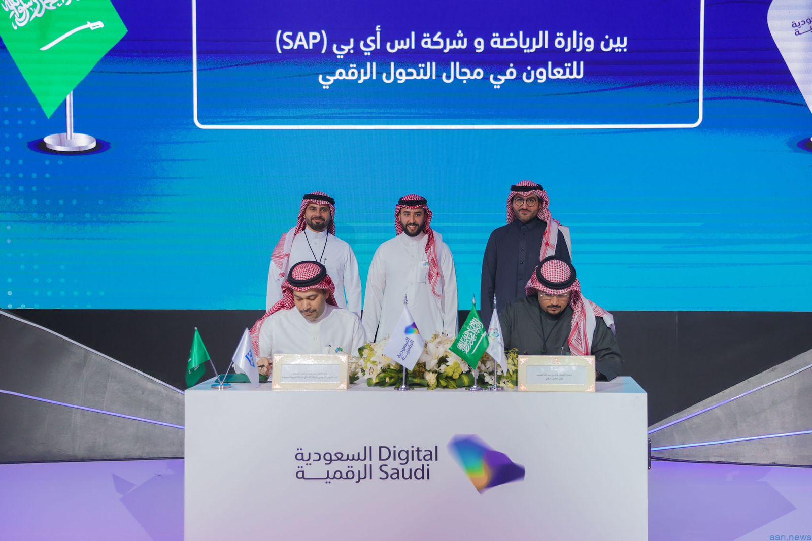ومثّل الوزارة في مراسم التوقيع الأستاذ خالد الغليقة وكيل التحول الرقمي، حيث تم توقيع أول مذكرة تفاهم مع شركة “إس إيه بي” السعودية للبرمجيات، وذلك بحضور المدير التنفيذي المهندس محمد الرميزان، حيثُ تهدف هذه المذكرة إلى تسريع مبادرات التحول الرقمي للقطاع الرياضي، والاعتماد على الخدمات السحابية وحلول البرمجيات والخبرات العالمية في التكنولوجيا والابتكار.