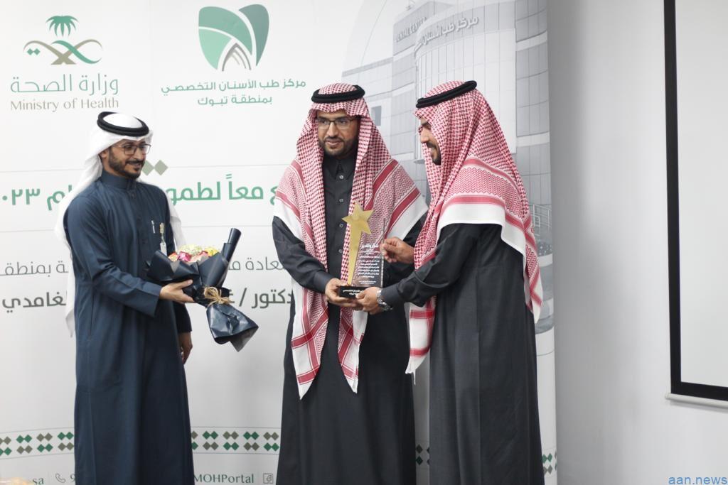 أشاد مدير عام الشؤون الصحية بمنطقة تبوك الدكتور غرم الله بن عبدالله الغامدي بجهود جميع العاملين في مركز طب الاسنان التخصصي لتفانيهم وتميزهم في العمل , و بما تحقق خلال العام الماضي من إنجازات , مثنياً في الوقت نفسه على إدارة مستشفى الملك فهد التخصصي وإدارة مركز طب الأسنان على متابعتهم ودعمهم لتطوير بيئة العمل وتحسين جودة الخدمات الصحية المقدمة ، جاء ذلك خلال احتفال مركز طب الأسنان التخصصي بتبوك يوم أمس الأول بتكريم 21 من الموظفين المتميزين لعام 2022م .
