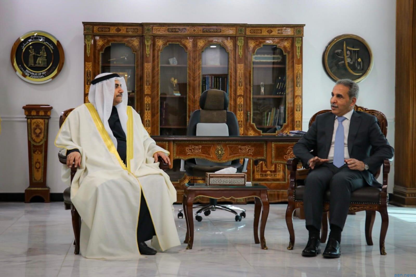 استقبل السيد رئيس مجلس القضاء الأعلى العراقي القاضي الدكتور فائق زيدان اليوم الأحد ، رئيس البرلمان العربي السيد عادل بن عبدالرحمن العسومي، ونائبه الشيخ شعلان الكريم والأعضاء الدكتورة حنان الفتلاوي والسيد ناظم الشبلي والأمين العام المستشار كامل شعراوي.