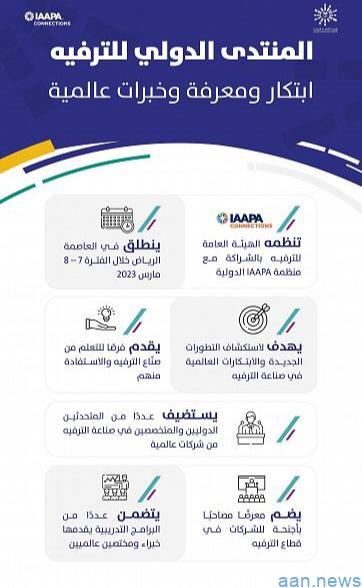 تستضيف العاصمة الرياض خلال الفترة 7 – 8 مارس الجاري، المنتدى الدولي للترفيه، الذي تنظمه الهيئة العامة للترفيه بالشراكة مع المنظمة الدولية للوجهات والمدن الترفيهية IAAPA، وتضم أكثر من 6 آلاف عضو في صناعة الترفيه في أكثر من 100 دولة حول العالم، في حدث كبير يعدُّ الأبرز من نوعه على مستوى الشرق الأوسط.