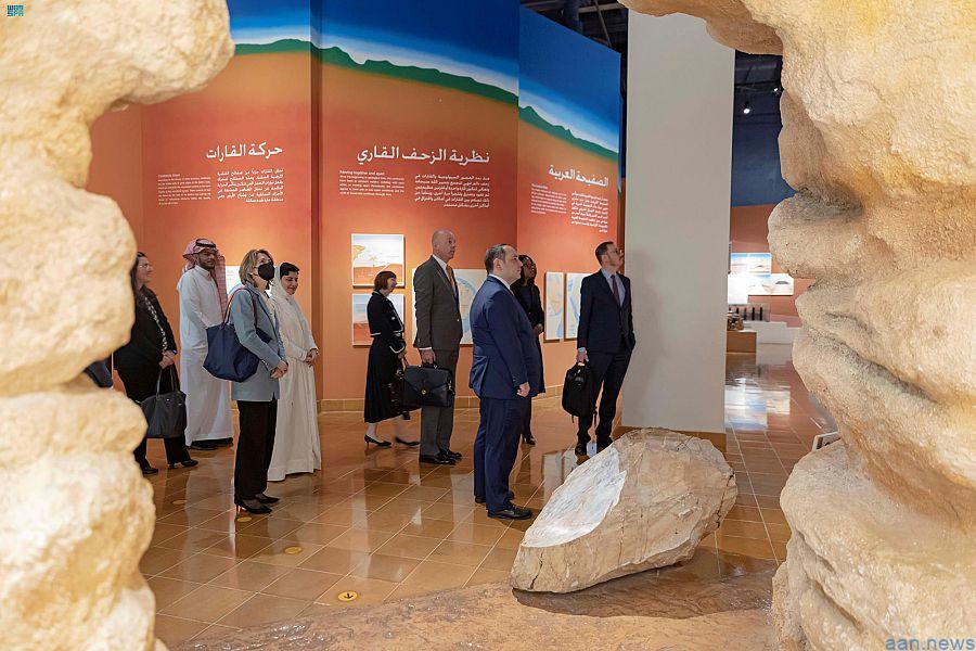 وخلال برنامج اليوم الأول للزيارة، تعرّف أعضاء بعثة المكتب الدولي للمعارض على بعض الشواهد الحضارية والفنية والتنوع الثقافي للمملكة، خلال جولتهم في المتحف الوطني في مركز الملك عبدالعزيز التاريخي بالمربّع ووقوفهم على العمق الحضاري الذي تزخر به هذه الأرض.