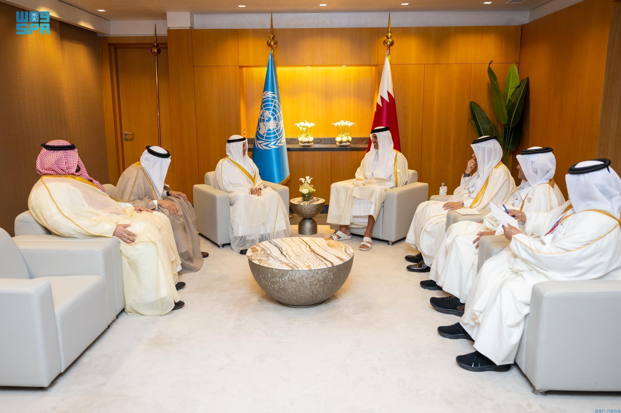 استقبل صاحب السمو الشيخ تميم بن حمد آل ثاني أمير دولة قطر، معالي وزير الاقتصاد والتخطيط الأستاذ فيصل بن فاضل الإبراهيم، وذلك على هامش مؤتمر الأمم المتحدة الخامس المعني بأقل البلدان نموًا والمقام في الدوحة.