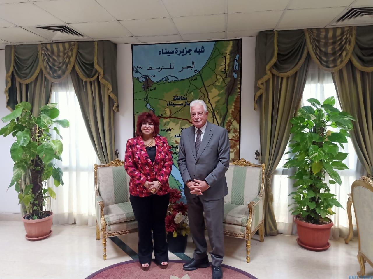 بمقر مكتبه بالمحافظة بجنوب سيناء ، الدكتورة هدى يسي رئيس اتحاد المستثمرات العرب ، لبحث سبل التعاون المشترك فى إقامة مؤتمر الاتحاد فى دورته ال26 ، المنتظر إقامته بشرم الشيخ خلال الفترة من 30 أكتوبر إلى 3 نوفمبر 2023.