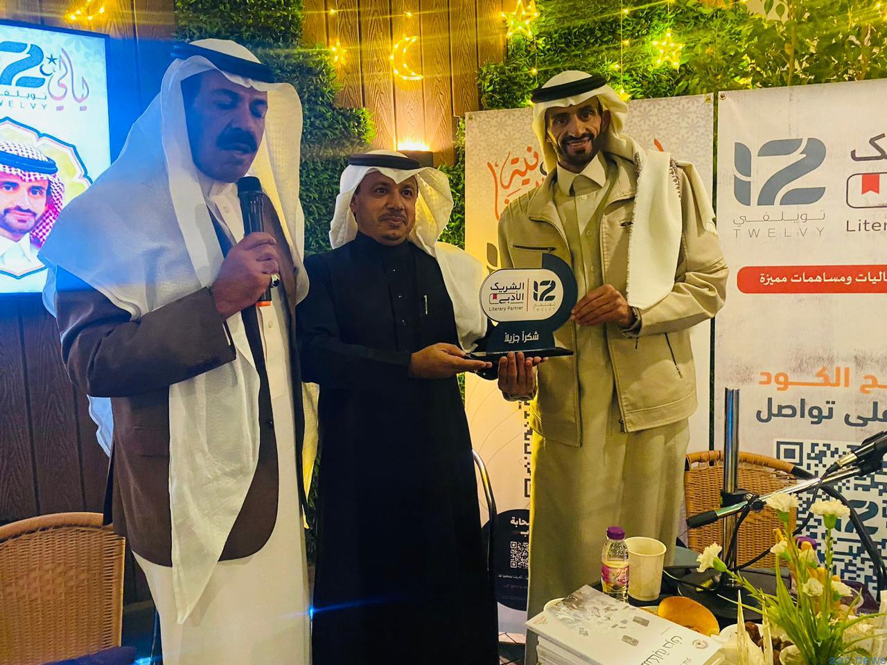 وفي ختام الأمسية كرم الأستاذ عبدالوهاب الشاعر القاص توفيق غنام بدرع تكريمي مقدم من الشريك الأدبي بالباحة مقهى تويلفي ، فيما قدم الغنام شكره وتقديره للشريك الأدبي وللحضور الكريم .
