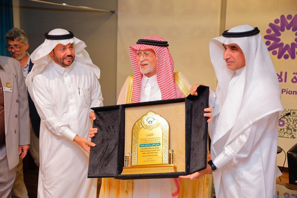 افتتح معالي الدكتور عبدالعزيز محي الدين خوجة وزير الثقافة والإعلام السابق ,المعرض التشكيلي للنادي الادبي الثقافي بجدة “الفن للجميع” الذي اقيم في “ريادة الإبداع ” بأدهم للفنون في مركز سلمى ، بحضور عدد كبير من رجال الاعمال والمثقفين والفنانين والاعلاميين حيث كرم النادي مجموعة من رجال الاعمال الذي يساهمون في دعم الحركة الثقافية والفنية بجدة وهم : الدكتور علي الناقور والشيخ احمد العبيكان والأستاذ الشريف حسين البركاتي والشيخ خالد الصيعري والفنان الرائد طه صبان , كما تم تكريم الفنانين الذين قدموا الورش والدورات بالنادي, وقد ضم المعرض التشكيلي اكثر من 170 عملا لأكثر من مائة فنان وفنانة في كافة المدارس الفنية والخط العربي , وتم تخصيص جزء من ريع المعرض لجمعية الوداد الخيرية، التي تهتم برعاية الأيتام .