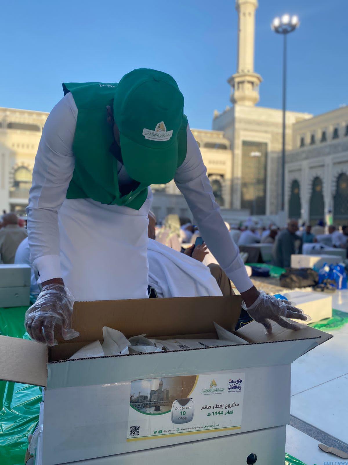 يذكر أن الجمعية تقوم يوميا بتقديم الفين وجبة إفطار صائم للصائمين في ساحات المسجد الحرام