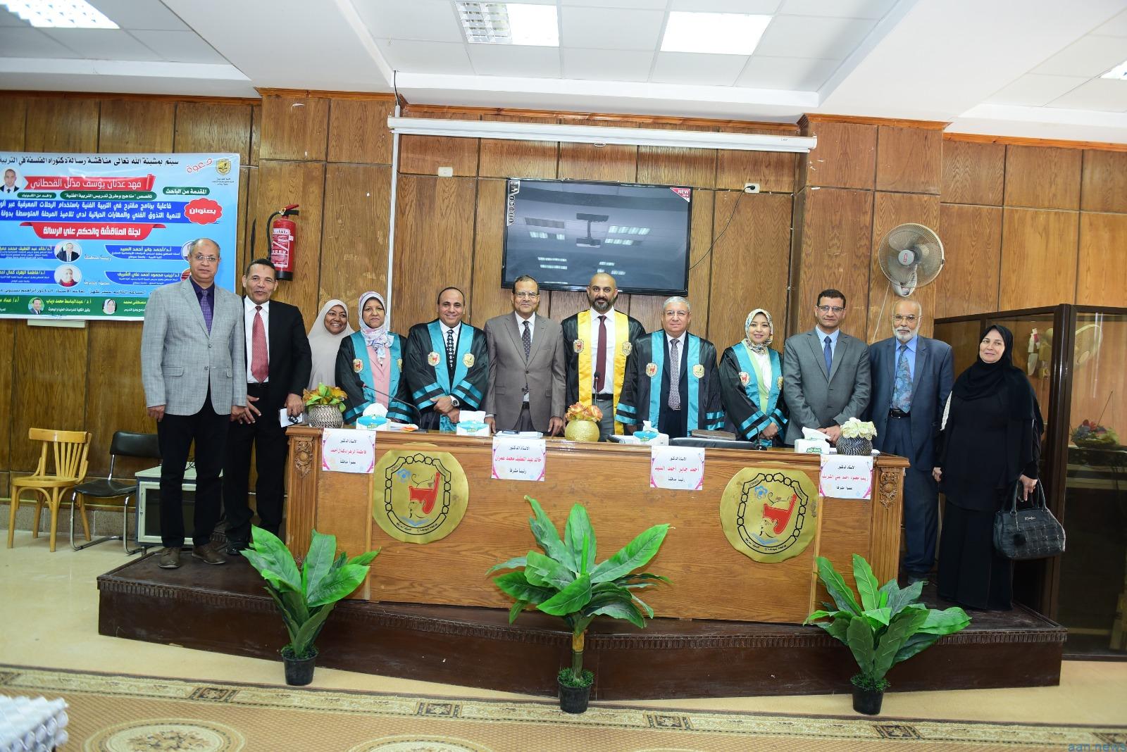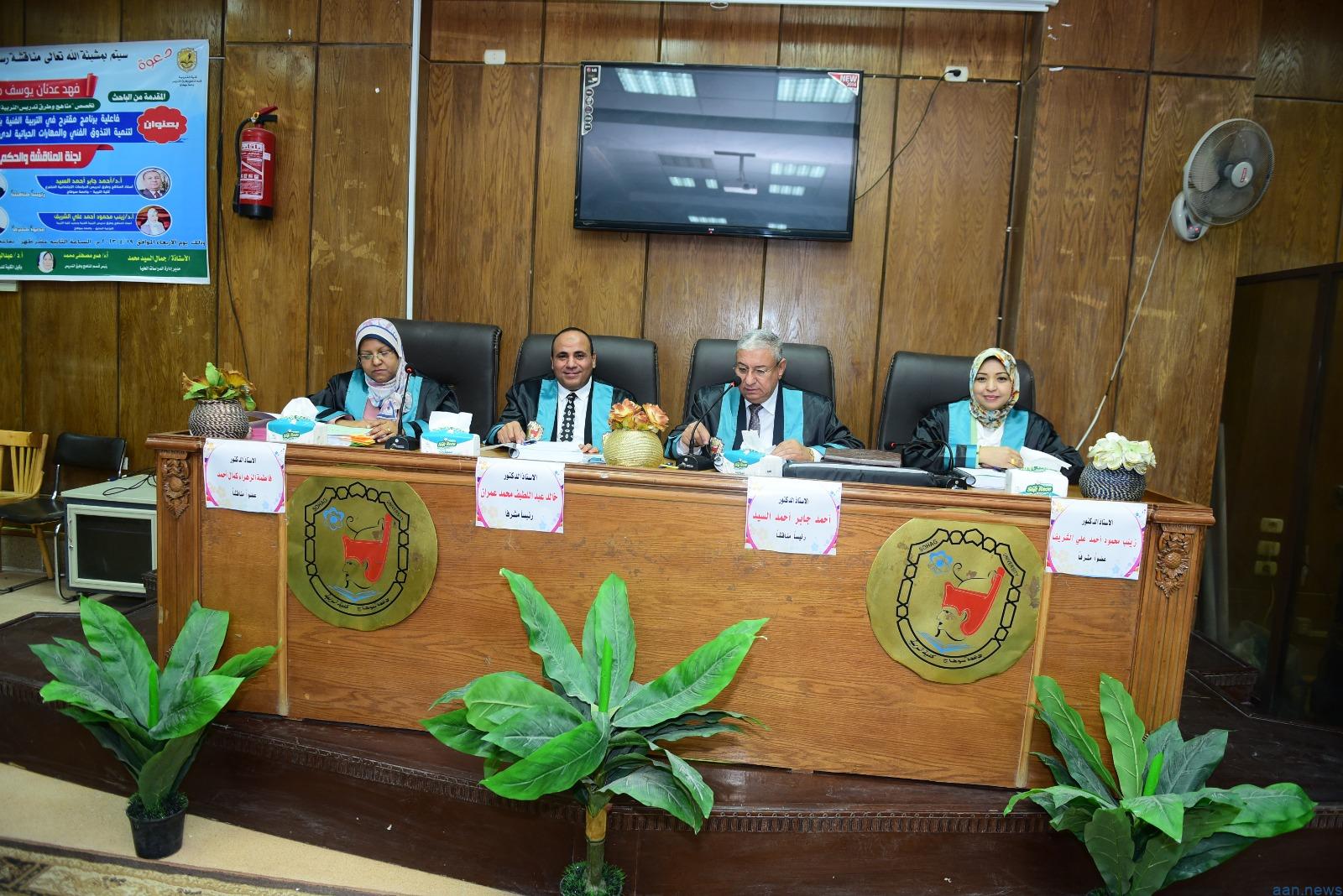 شهد الدكتور مصطفى عبدالخالق رئيس جامعة سوهاج، مناقشة رسالة دكتوراة الفلسفة في التربية، المقدمة من الباحث فهد عدنان يوسف القحطاني الوافد من دولة الكويت الشقيقة، في تخصص مناهج وطرق تدريس التربية الفنية، بعنوان “فاعلية برنامج مقترح في التربية الفنية باستخدام الرحلات المعرفية عبر الويب لتنمية التذوق الفني والمهارات الحياتية لدى تلاميذ المرحلة المتوسطة بدولة الكويت”، بحضور الدكتور عماد صموئيل القائم بعمل عميد الكلية، الدكتور عبدالباسط دياب وكيل الكلية لشئون الدراسات العليا والبحوث، الدكتور حسين عطا وكيل الكلية لشئون التعليم والطلاب وعدد من أعضاء هيئة التدريس.