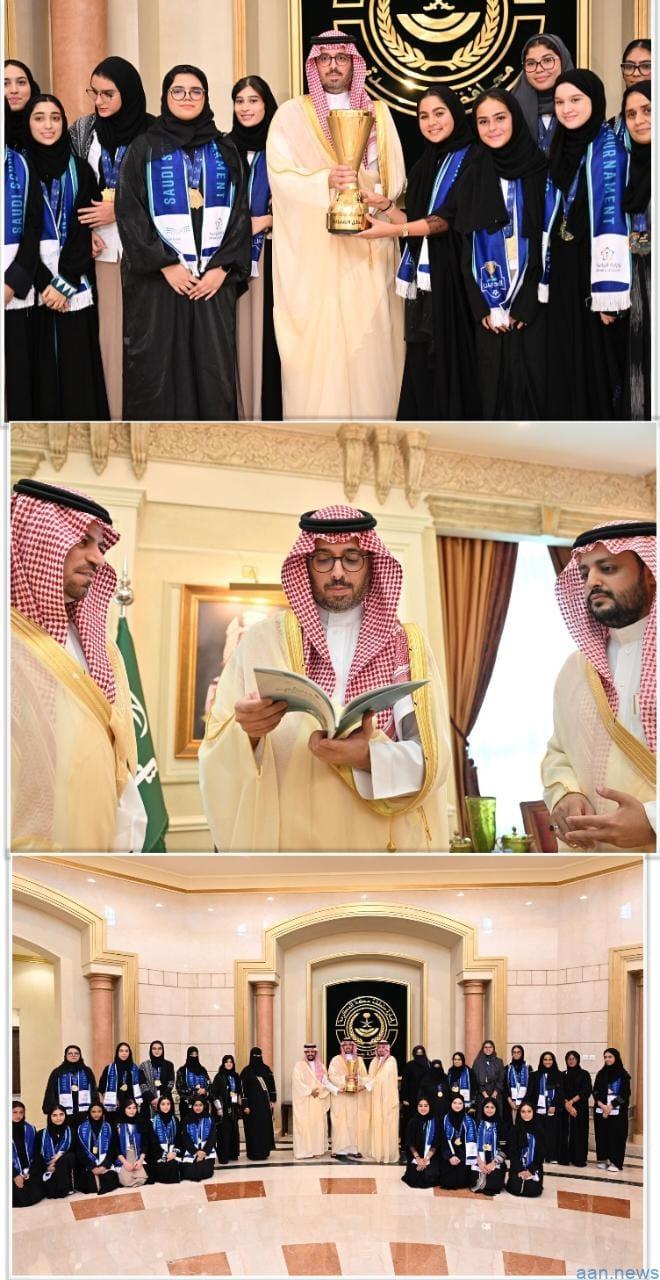 استقبل صاحب السمو الأمير سعود بن عبدالله بن جلوي محافظ جدة، بمقر المحافظة اليوم، طالبات فريق مدرسة دار الحنان الثانوية الأهلية بتعليم جدة بمناسبة حصولهن على بطولة المملكة لنخبة دوري المدارس “بنات” في نسختها الأولى 2022 تحت شعار “جيل اليوم يصنع إنجازات المستقبل”، بحضور مدير عام فرع وزارة الرياضة بمنطقة مكة المكرمة عبدالعزيز بن عبود، ومدير عام التعليم بمحافظة جدة الدكتور نايف الزارع وعدد من قيادات تعليم جدة.