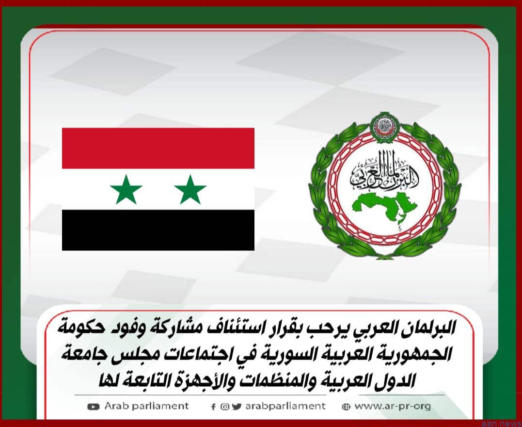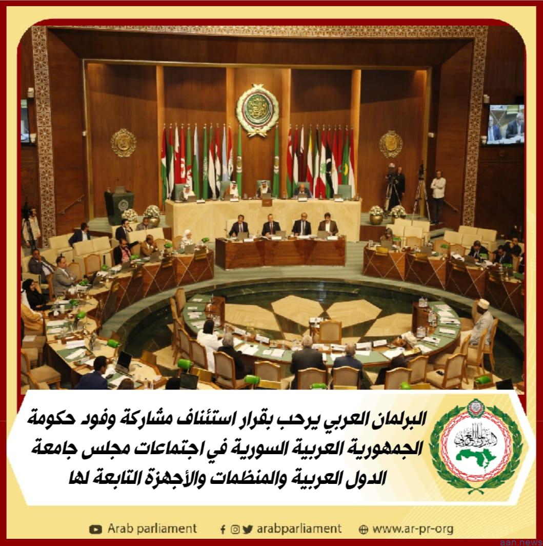 البرلمان العربي يرحب بقرار استئناف مشاركة وفود حكومة الجمهورية العربية السورية في اجتماعات مجلس جامعة الدول العربية والمنظمات والأجهزة التابعة لها
