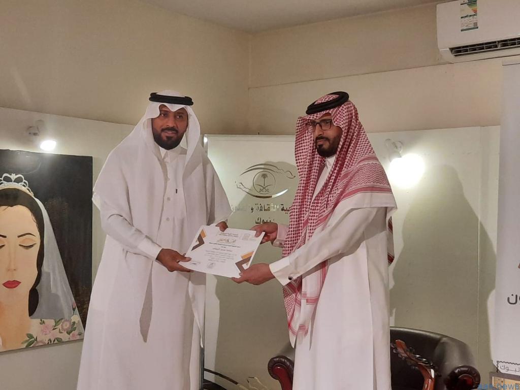 وفي ختام الدورة سلم مدير جمعية الثقافة والفنون بتبوك الأستاذ ماجد بن ناشي العنزي الشهادات للمتدربين والمتدربات والبالغ عددهم أكثر من ( ١٨ ) متدربا كما تسلم المدرب درعا تذكاريا والتقطت الصور التذكارية للحضور فيما أعرب مدير جمعية الثقافة والفنون بتبوك عن سعادته بما شاهده من تميز للمشاركين بالدورة وحرص للإستفادة مما قدم فيها من محاور وتطبيقات عملية ميدانية مشيرا إلي ان هذه الدورة سوف يتبعها دورات قادمة في مجالات التصوير خاصة والمجالات الثقافية والفنية عامة وذلك دعما للمواهب بالمنطقة.