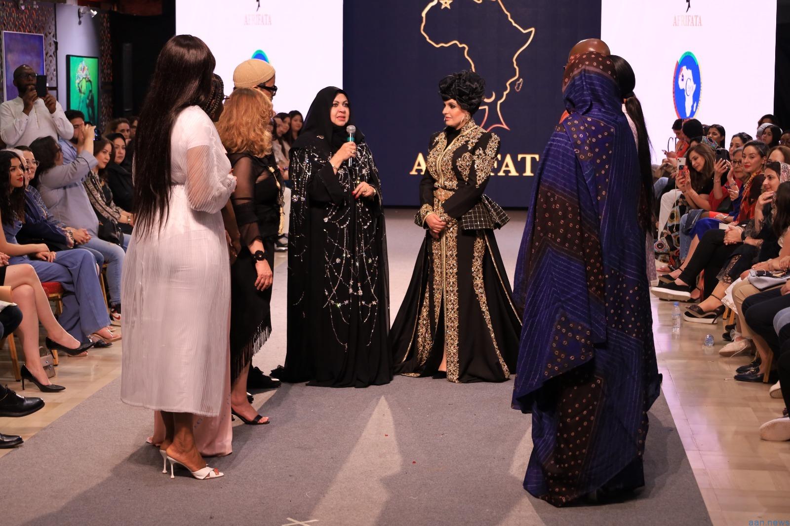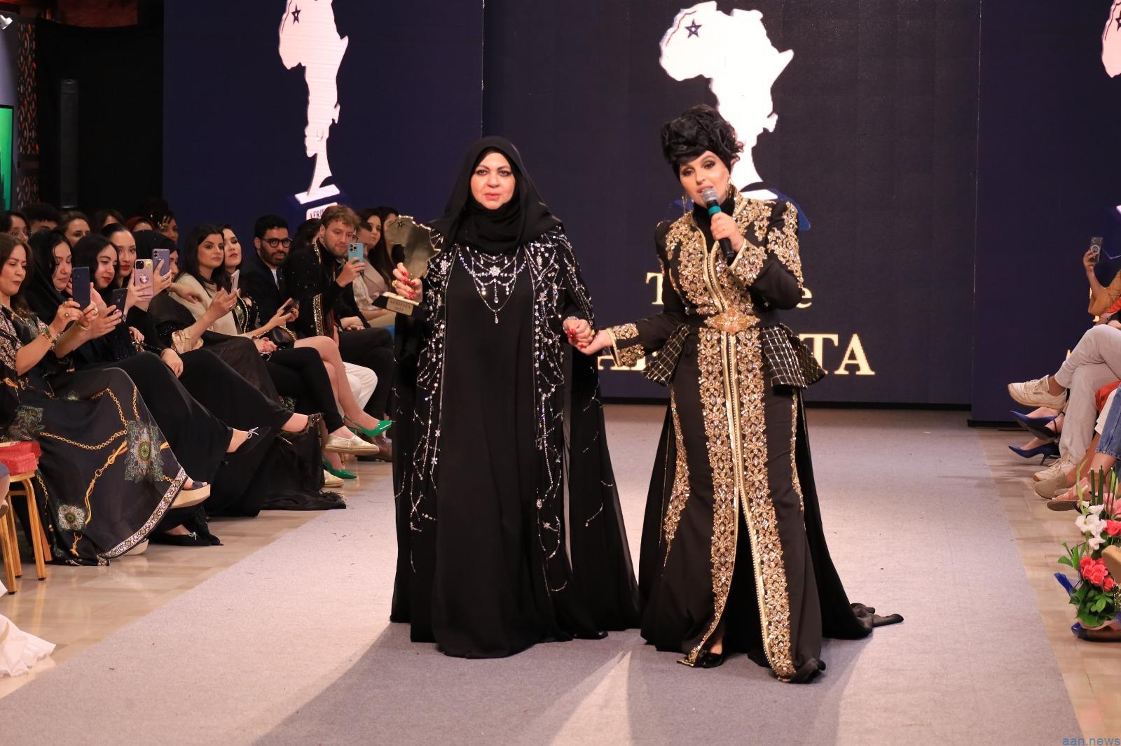 من جانبها وجهت المصممة العالمية منى المنصوري الشكر لمديرة المهرجان سيدة الأعمال ورئيسة جمعية المرأة المغربية زينب القادري على دعوتها لها كضيفة شرف المهرجان من أجل دعم المصممين الأفارقة الشباب في هذه التظاهرة الثقافية.