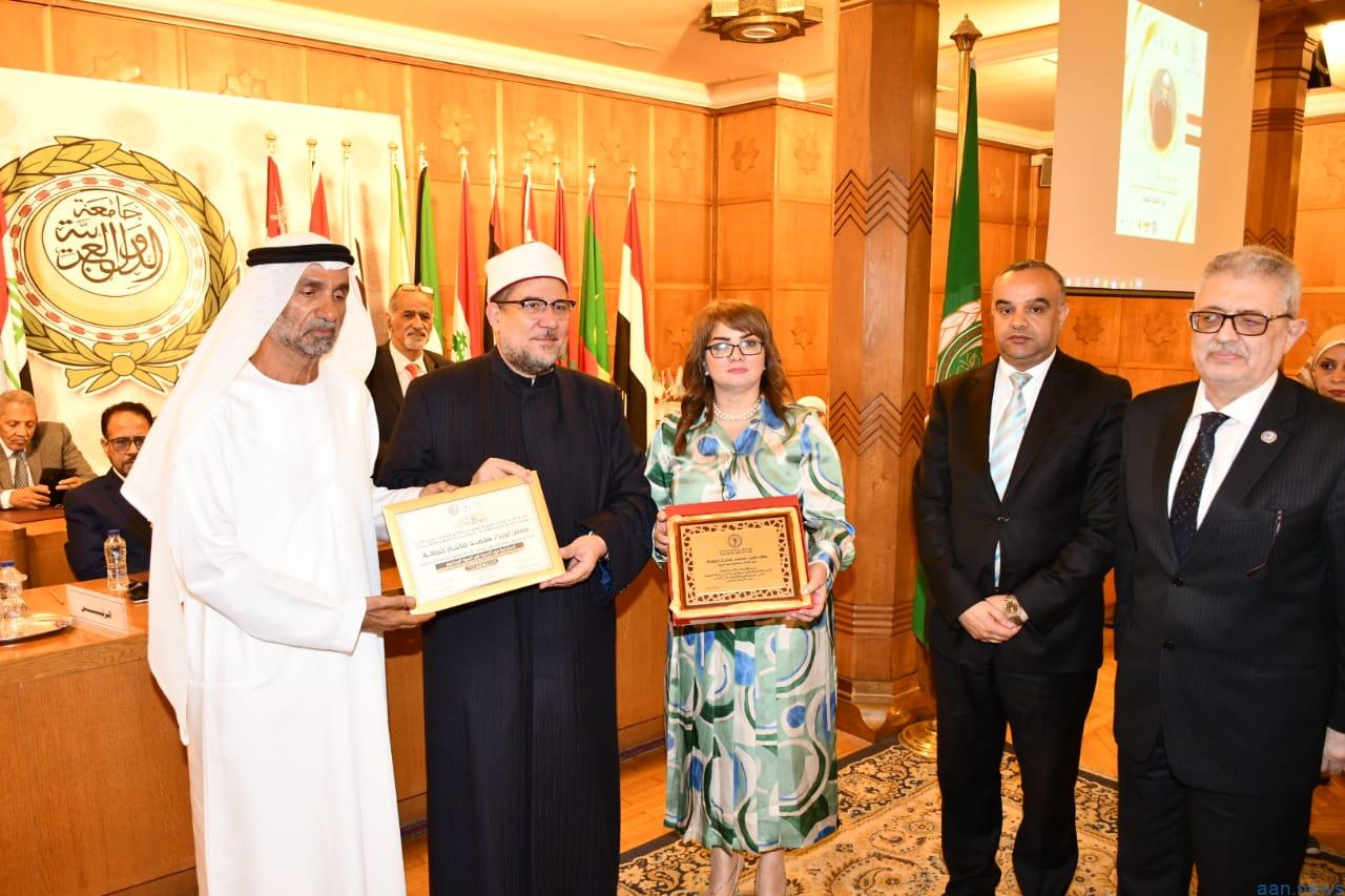 كما أهدت الدكتورة/ أمال إبراهيم رئيس مجلس الأسرة العربية للتنمية درع مجلس الأسرة العربية للتنمية لوزير الأوقاف تقديرًا لجهوده وإسهاماته في الدعوة والتنمية المجتمعية.